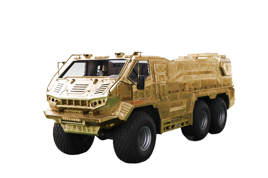我公司研发设计了六驱沙漠景区冲浪车是一转定制化的非公路人员运输车,主要用于沙漠地区游客游玩使用,可乘坐18人。