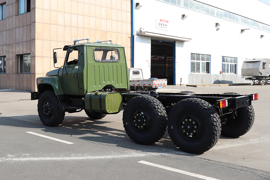 发动机带有预热功能,整车可以在-41℃环境温度下能顺利启动。货箱底板采用纯铁材质,带有防滑花纹。两侧边板安装有折叠座椅,货箱内部装有固定链条,尾箱板可开启,带有2个折叠爬梯。蓬布篷杆可拆卸,在风沙暴雨天气下,可以有效的保护货箱内的人员和物资。