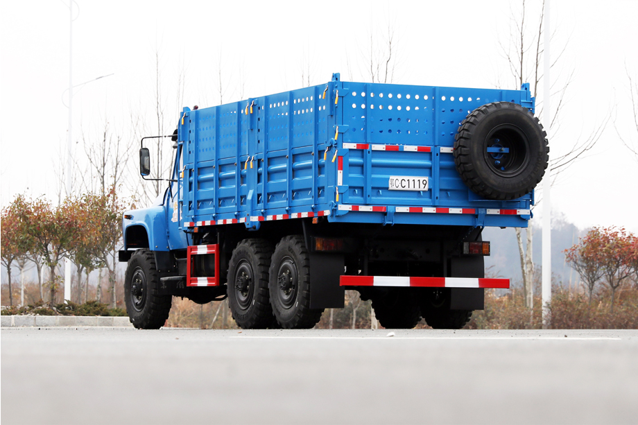 EQ2082E6D也叫做EQ240或者25Y,是东风公司早期开发的一款2.5吨六驱军用长头柴油越野汽车,曾被称为“英雄车”,绞盘、灯网、防护网、防空灯、枪架、牵引装置、双油箱都是它的特点。由于经历过实战检验,越野性得到认可,所以后来也民用化。货箱尾板可向下翻开,后方装有2个折叠爬梯,内部可安装折叠座凳。同时配备有可拆卸的蓬布篷杆,可以防止雨水风沙。