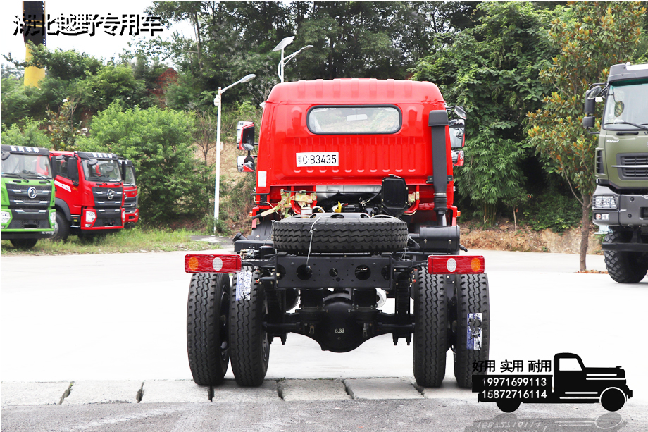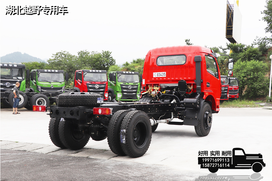 东风轻卡4x2底盘,小巧轻便,节能减排。主要用于城镇、乡村之前运输少量货物,也可改装成专用车型用于市政环卫、道路救援、仓储运输等。